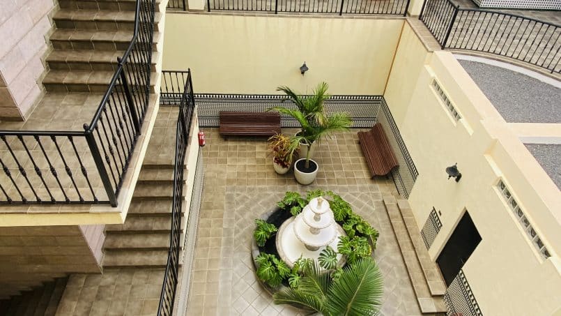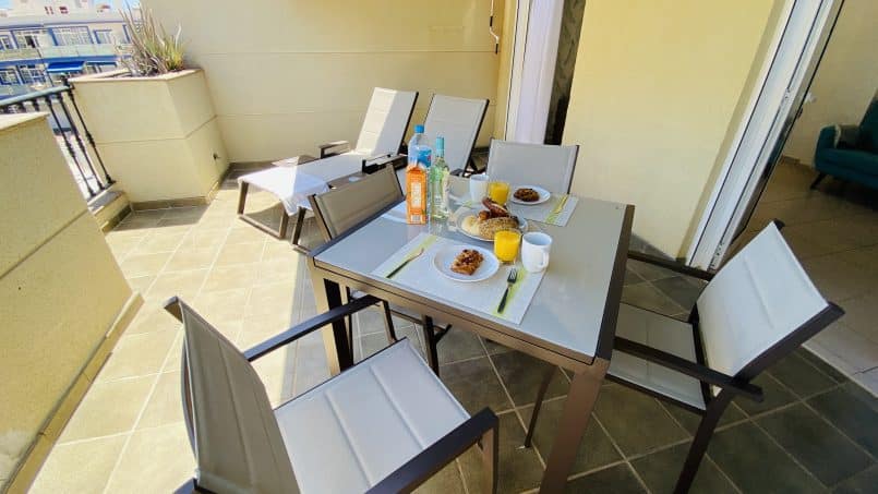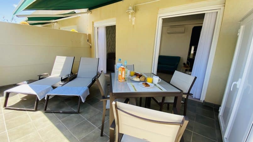 Lige uden for komplekset skal du kun gå rundt 50 meter til nærmeste SPAR supermarked, strand eller 100 meter for at komme til havnen og det område, vi kalder “lille Venedig”.
